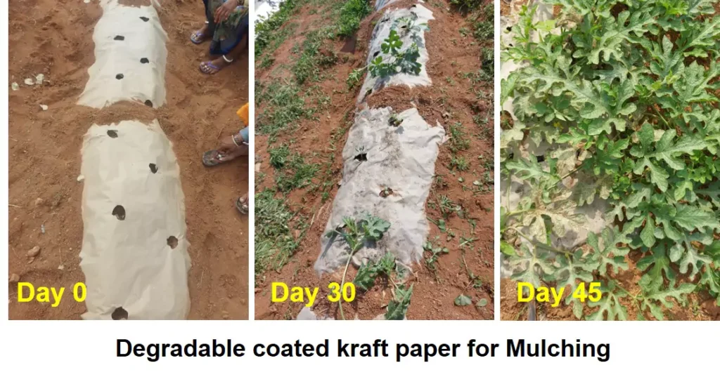 Farmers around the world use mulching to protect crops, suppress weeds, save water, and improve soil health. For decades, plastic films, especially polyethylene, have been the most common mulching material because they are inexpensive and effective. However, these plastic mulches are neither recyclable nor biodegradable after use. Therefore, farmers must remove them from soil, a process that is both labour-intensive and polluting the soil by microplastics. Ultimately, the plastic mulches are going to landfilling or on-site burning, which is a major concern for the environment. A replacement of such plastic mulch is required to save our soil and the environment. In this regard, we started working towards developing a degradable mulch using kraft paper. However, in comparison to polyethylene, paper is poor in both strength and water-repelling properties. To improve those properties, we developed a degradable coating material that can be easily coated on the paper and the coated paper showed significant improvement in both strength and water repelling. The coated paper was successful to function as mulch for short duration (2-3 months) crops. The paper need not be removed after crop season as it gradually degrades and mixes with the soil. With the Sree Ramakrishna Research Grant 2025, we will work towards improving the performance of this paper, optimizing its cost, and other aspects like its commercialization, for sustainable and environment-friendly mulching.